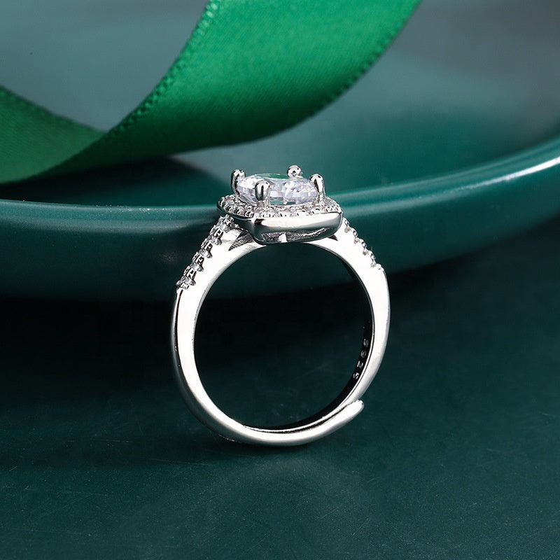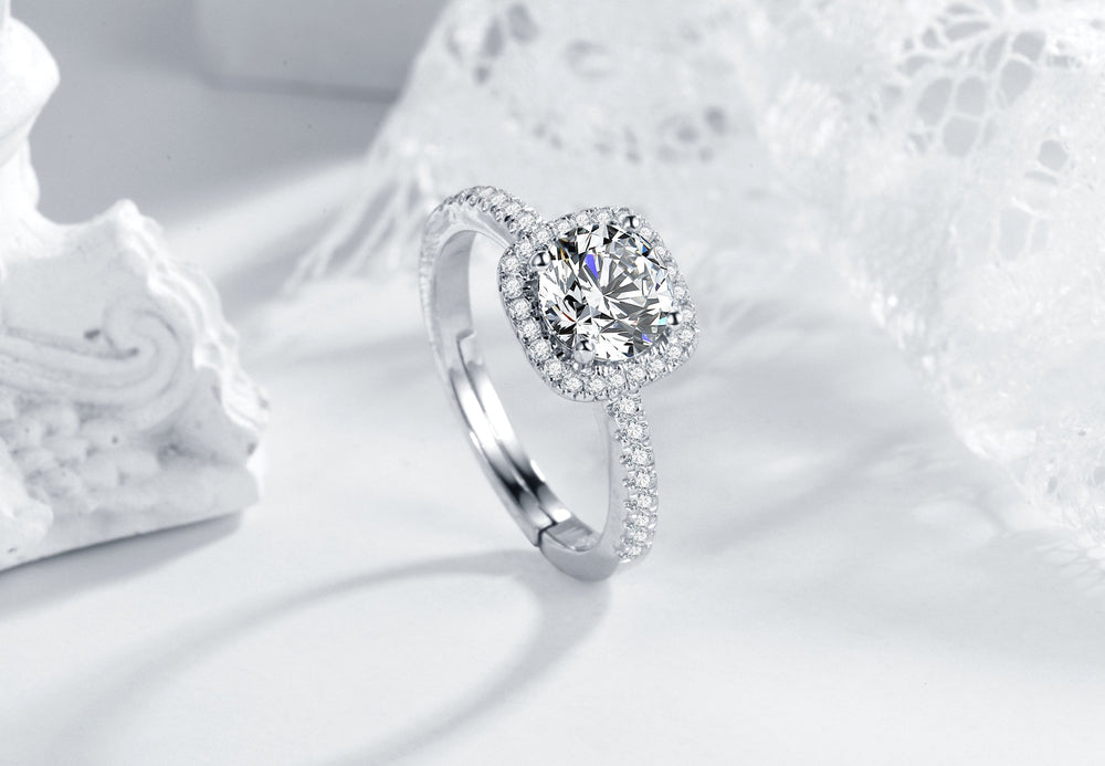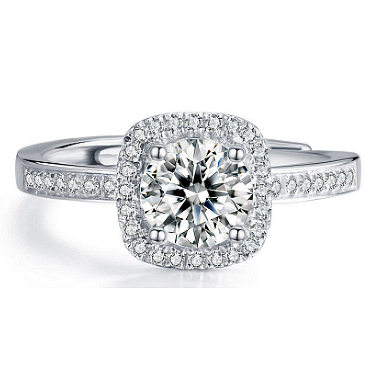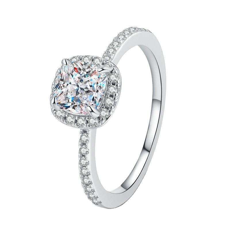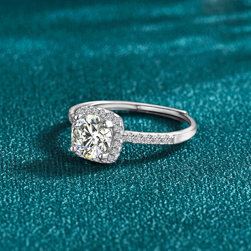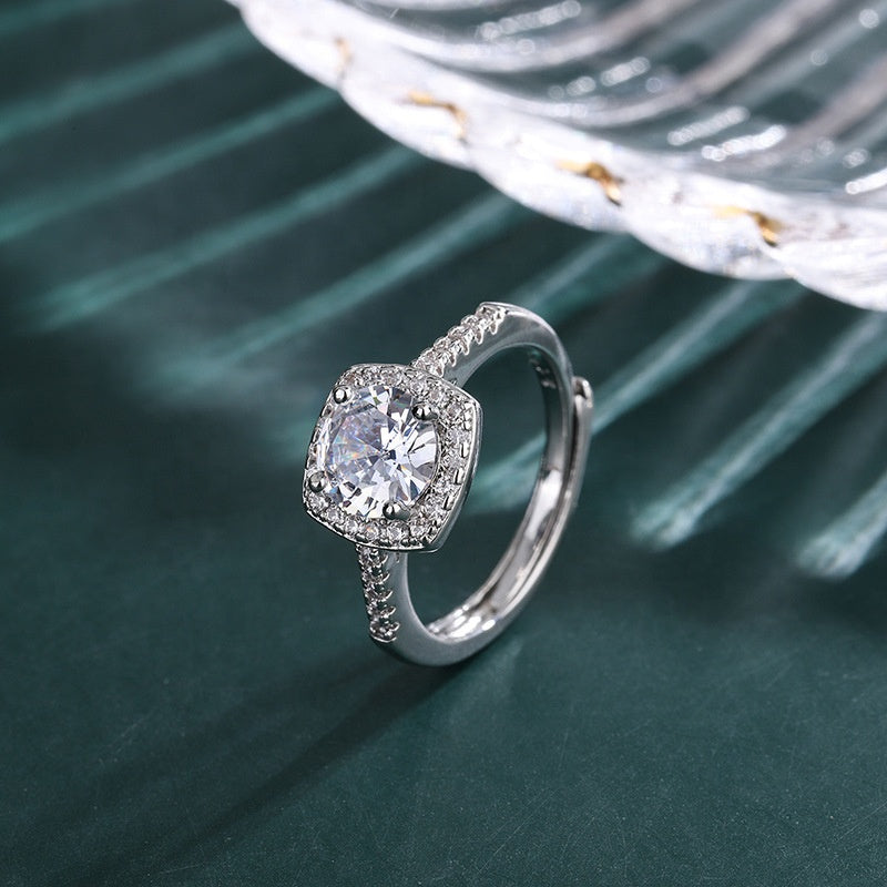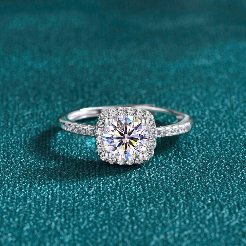 خاتم أنيق مصنوع من الفضة الإسترليني S925 الفاخرة، يتميز بحجر المويسانيت اللامع ذو القطع المربع بوزن 1 قيراط، والذي يوفر بريقًا استثنائيًا وفخامة راقية. التصميم الكلاسيكي يضفي أناقة خالدة، مما يجعله مثاليًا للمناسبات الخاصة وكذلك للاستخدام اليومي الراقي.